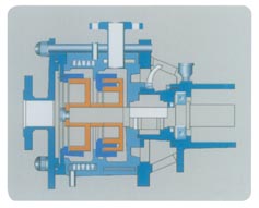 工作腔内装有一组定、转子,工作腔内传动轴采用悬臂式,弹性联轴器将电机与轴承箱内的主轴联接,提高传动轴的运行质量,密封形式根据不同的工况来选择。