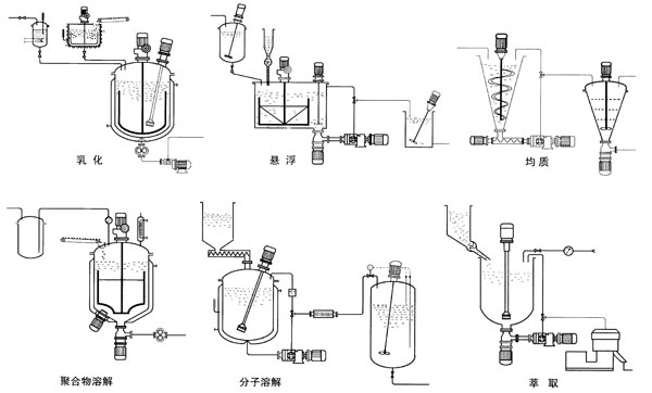 吸料系统改变了直接向液体中加入料的方式,它可以连续加入固态或液态原料,形成高品质的分散剂,悬浮剂和乳液,实现了加料连续性,解决了混合过程中气泡等轻质物浮在液面不易混合剪切之难题。
