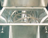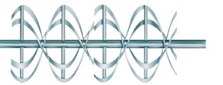 螺条搅拌器的转动使物料上下作周向翻动,同时由于螺条搅拌器的特殊结构使内层物料和外层物料作双向辐射运动,可迅速达到混合均匀的效果。