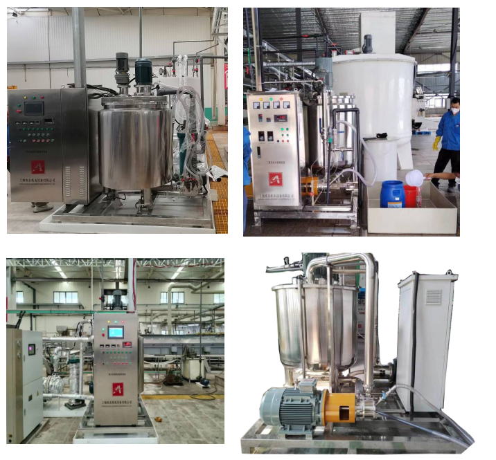 2、设备工艺流程:通过CMC母胶制胶设备进行制胶,固液分散混合机高效分散气相二氧化硅成胶体水溶液,再在CMC母胶配胶设备进行配胶。供蓄电池灌胶机使用。