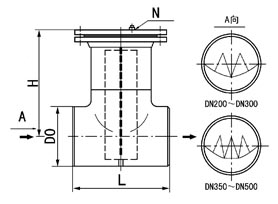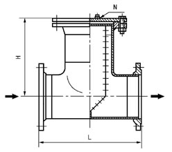 (3)T型对焊连接折叠直通式过滤器(TMI-W型)(DN200~500,PN≤5.0MPa)