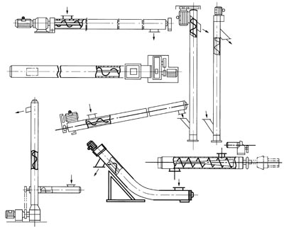 根据各种用途、安装位置,有各种型号、各种输送方式,对减速器、电动机的安装位置可多样化、不受限制,也可以多点加料。